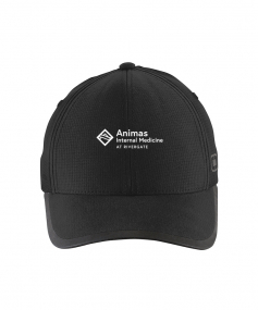 Fabric is 100% polyester pinhole woven mesh with structured profile, mid features, black reflective O heat transfer on side panel black reflective welding on bill, and OGIO seam taping. Low-profile hook and loop with black reflective stacked O heat transfers.